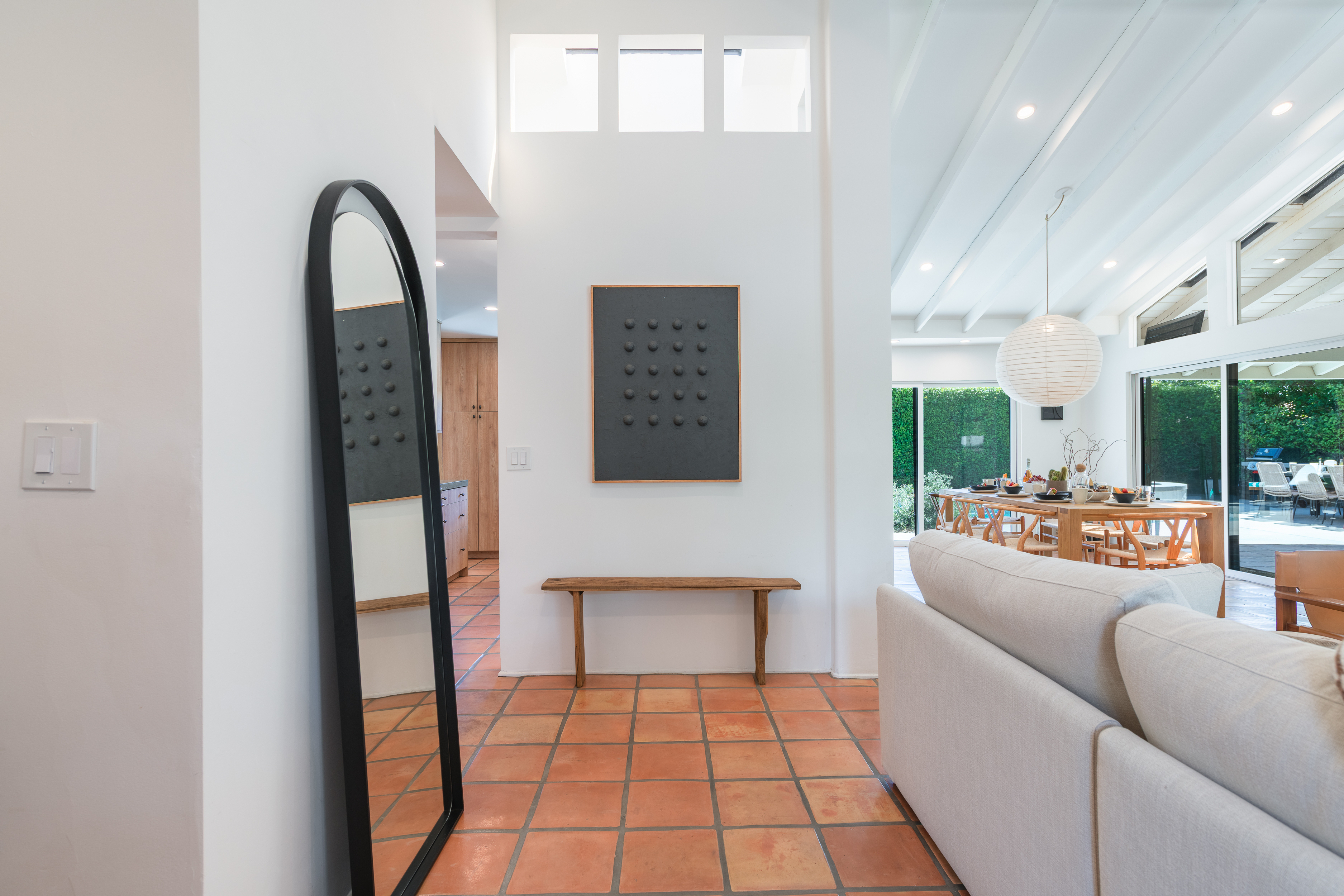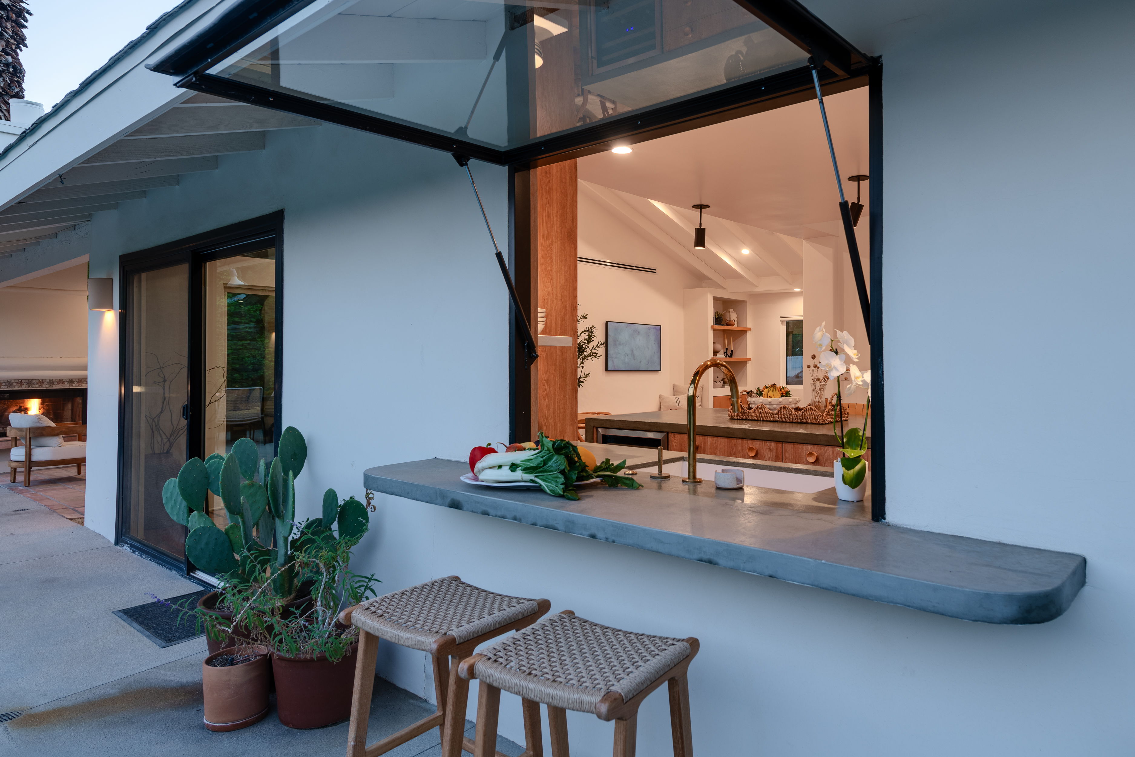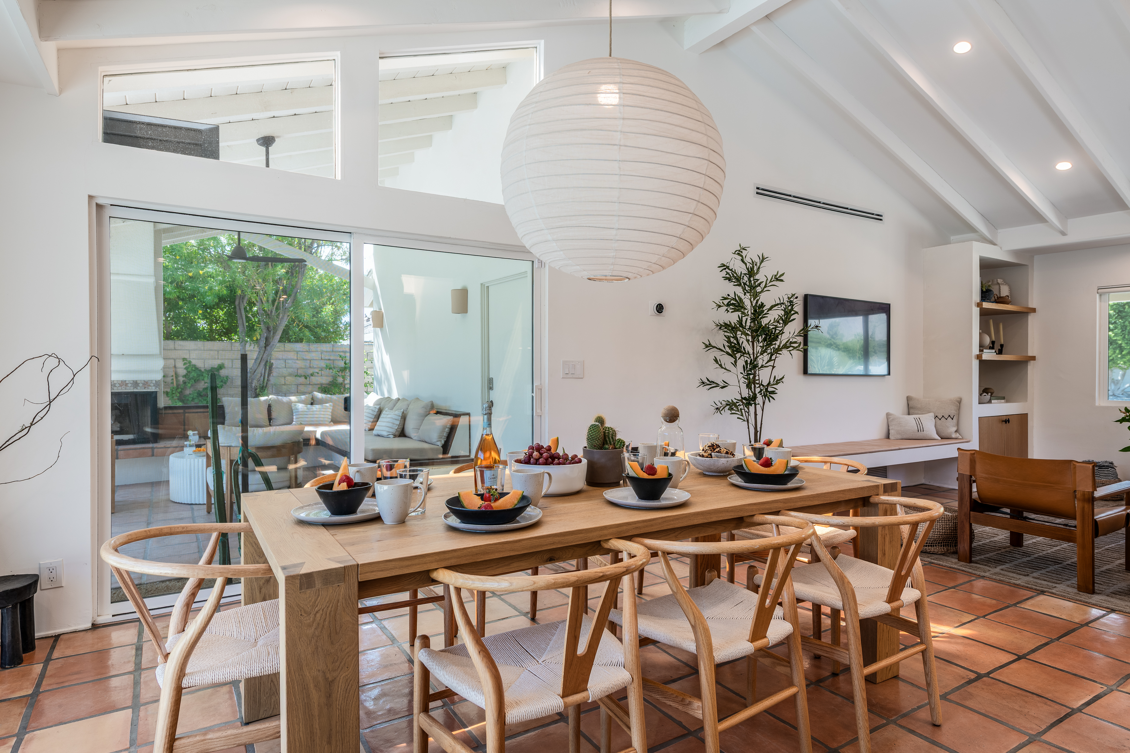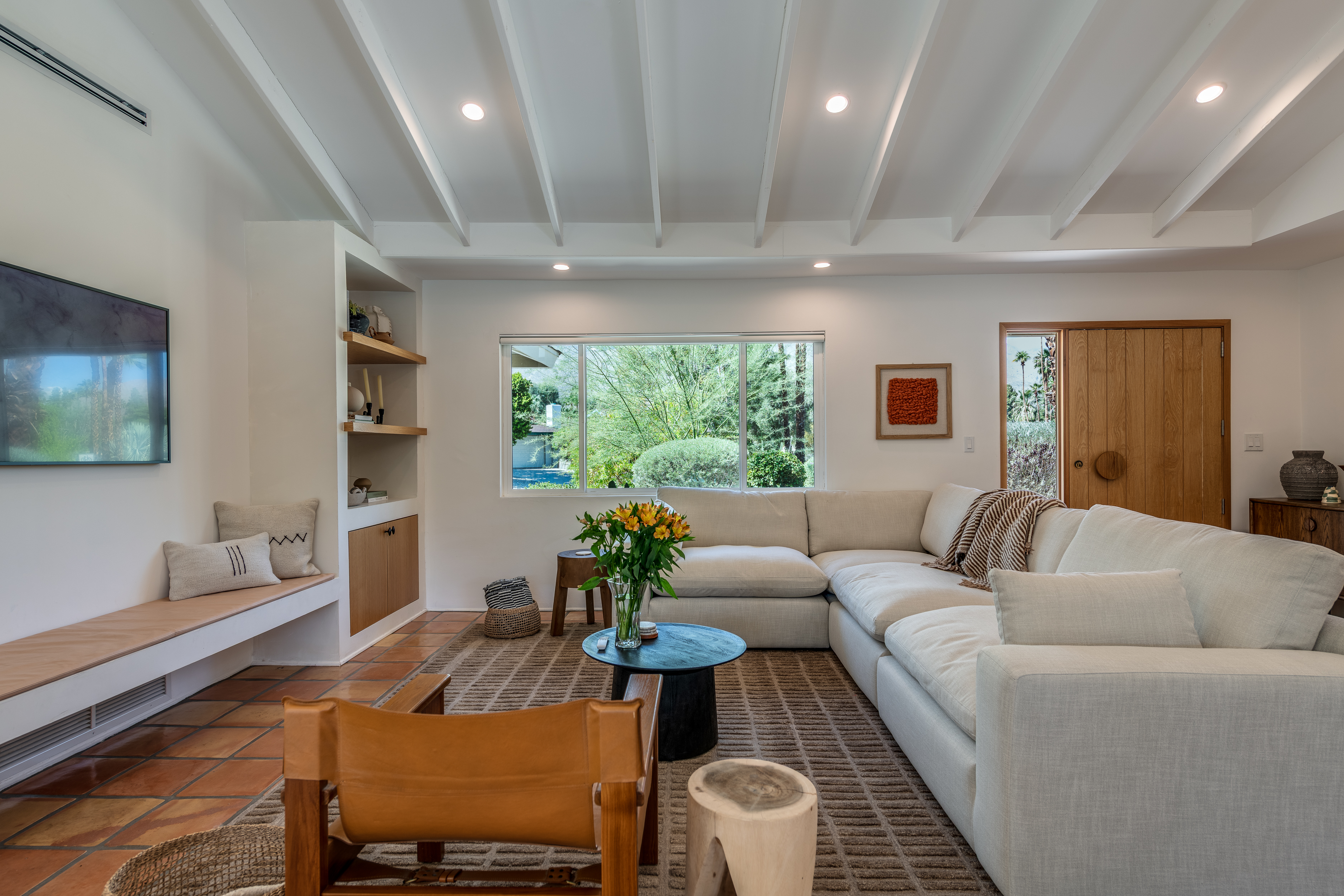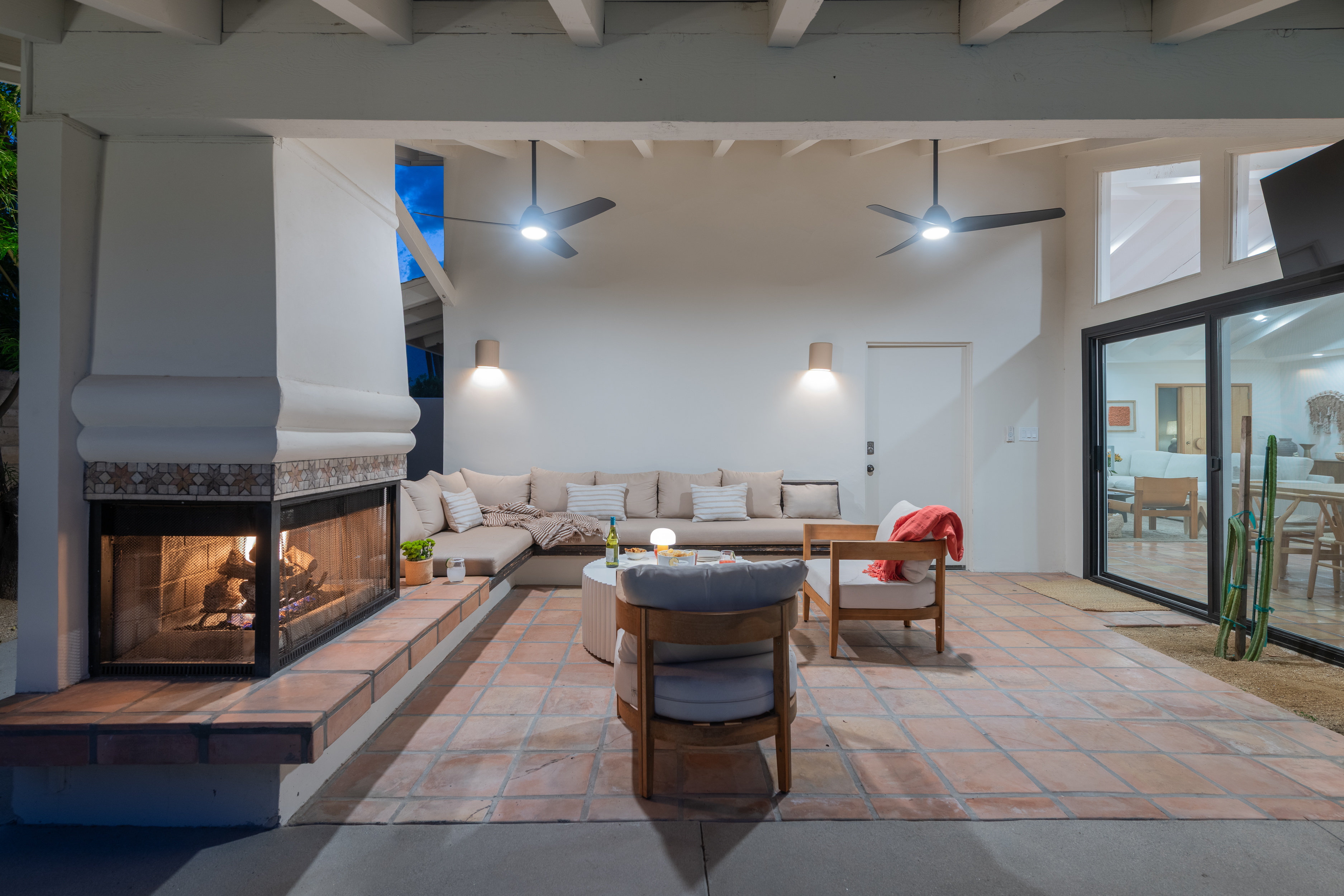 The home features 4 bedrooms, 3 baths and has been remodeled to embrace the original ranch design but is outfitted with modern comforts. The home offers indoor/outdoor living with a pass through window over the kitchen sink so poolside entertaining isn't neglected. That is coupled with multiple sliding doors to the pool and a gracious covered patio with an outdoor fireplace. Relaxed evenings are inevitable. The sparkling pool is just steps away from the house, paired with poolside dining and the hot tub offers very strong jets for any aches earned after golf or tennis.