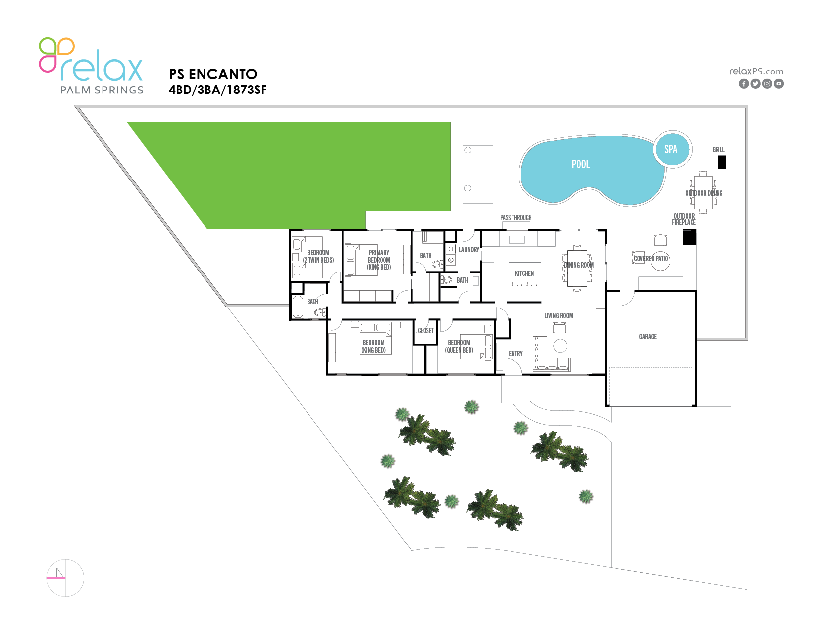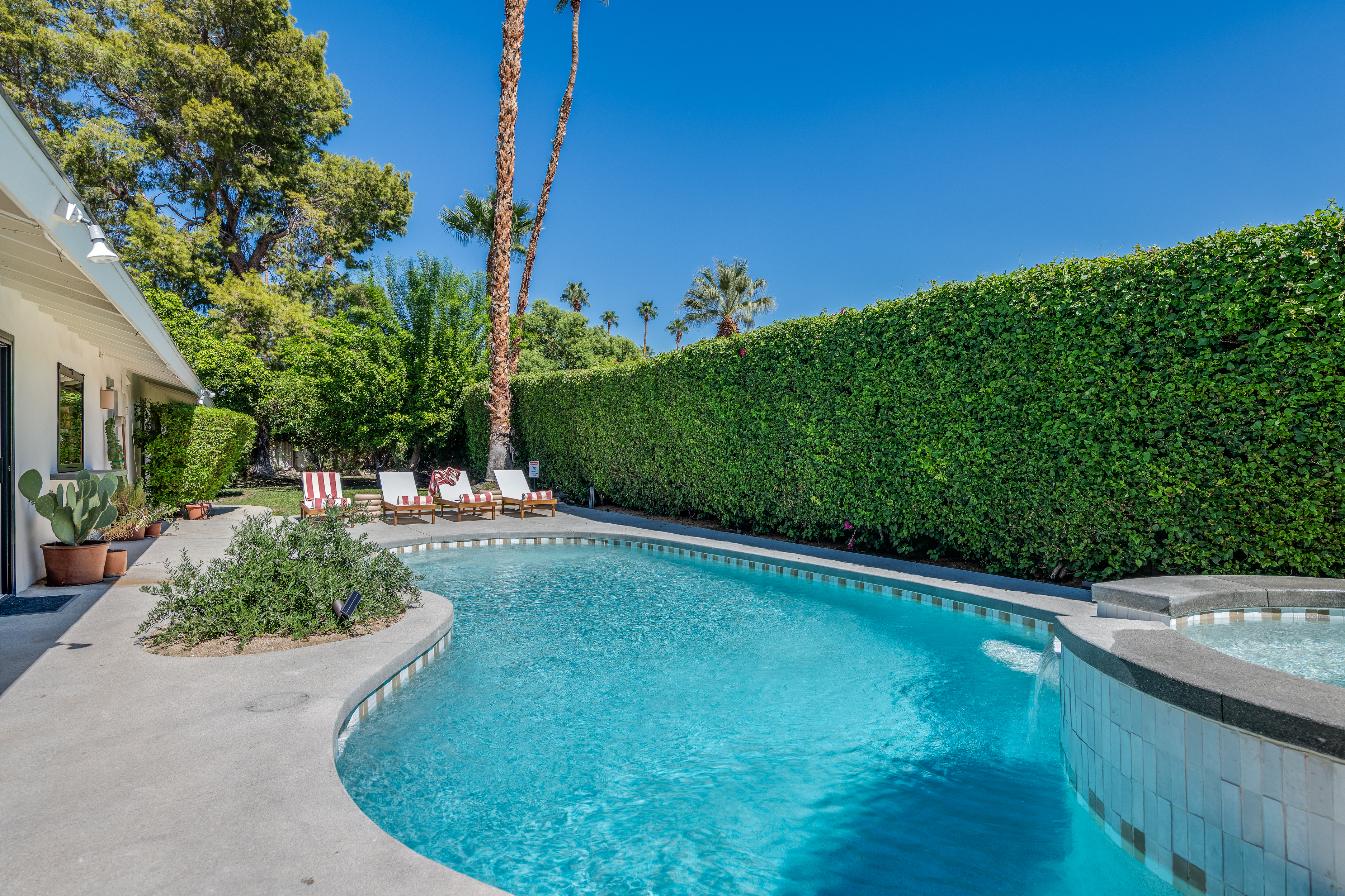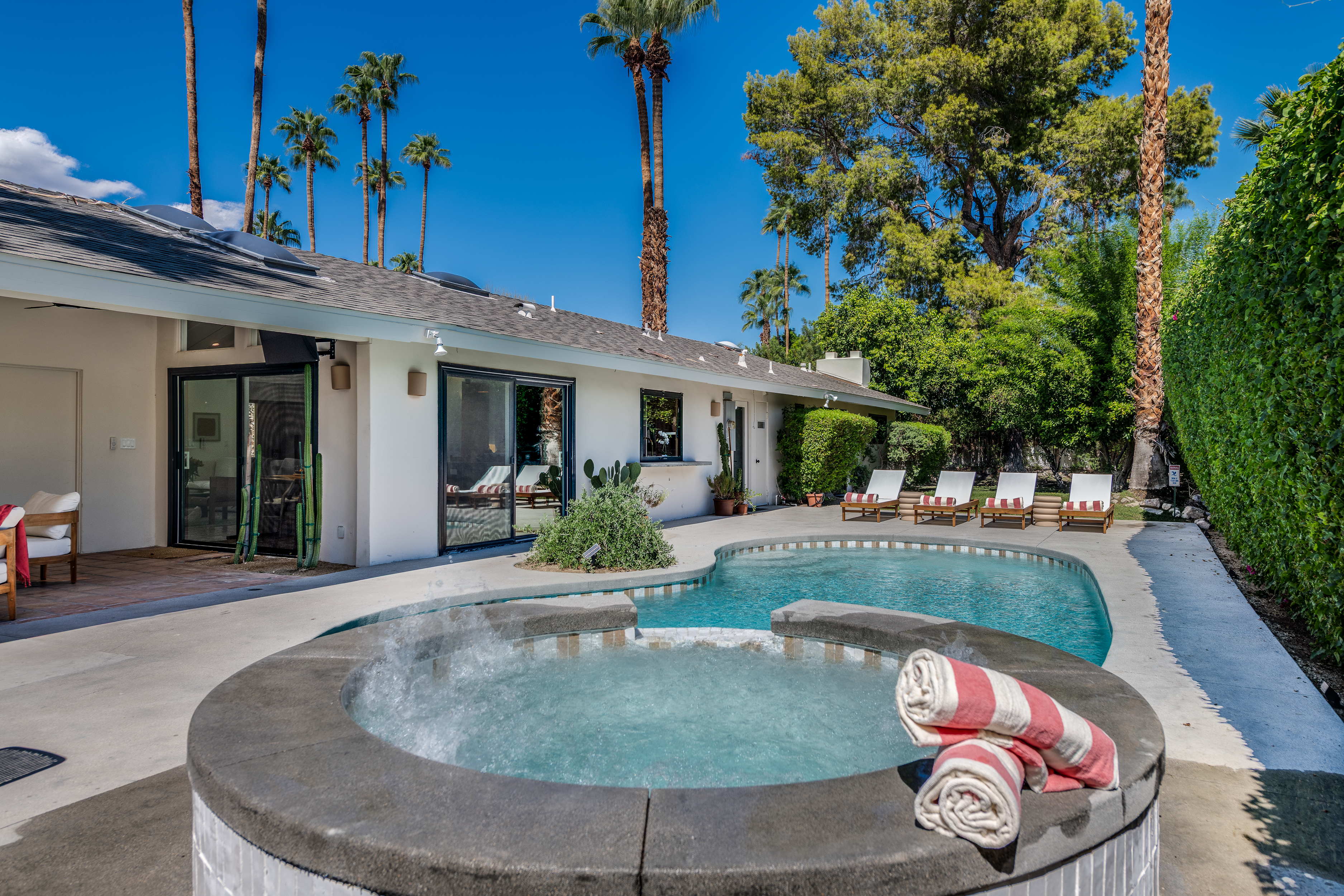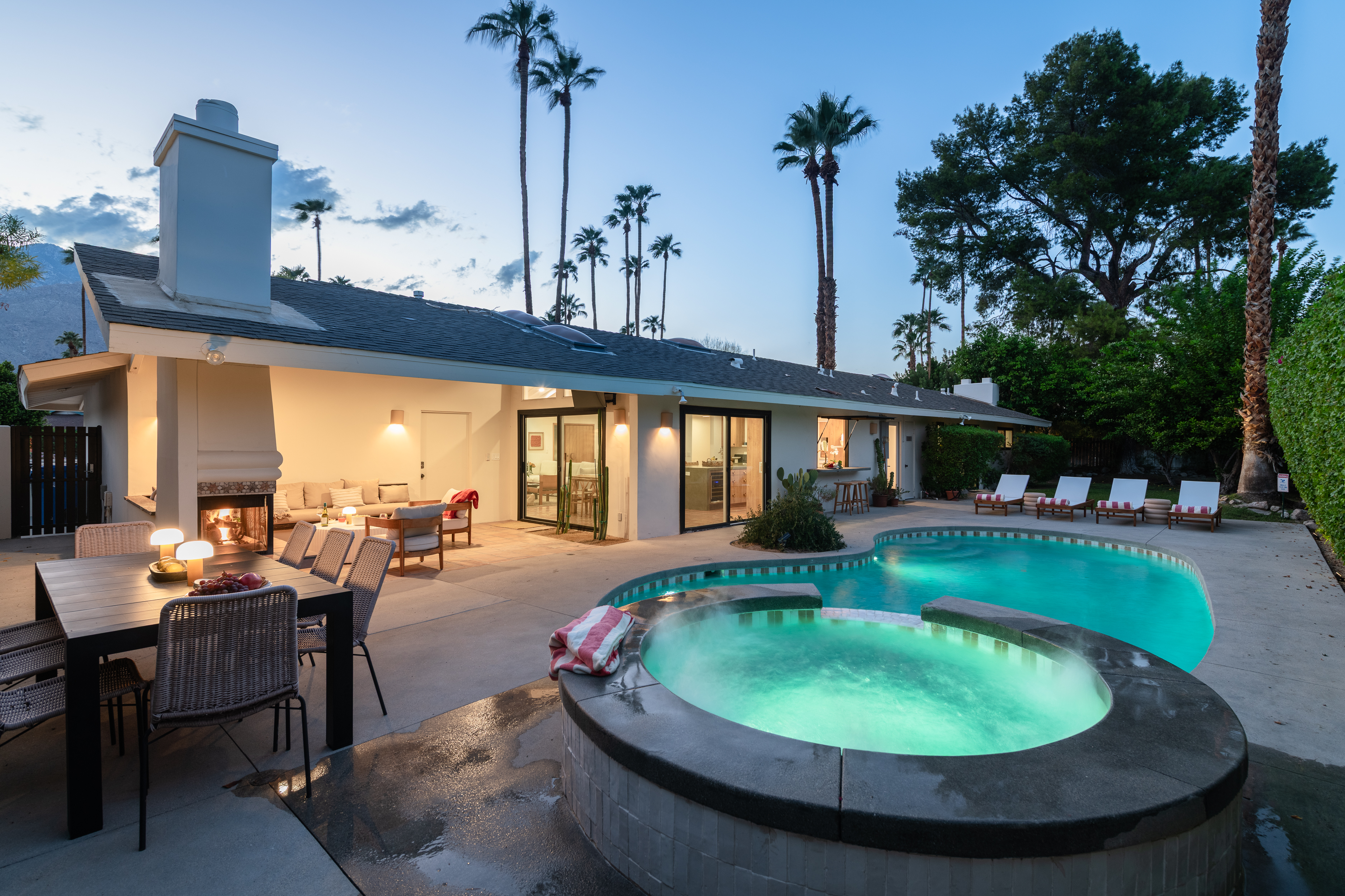 Los Compadres is a premier neighborhood in South Palm Springs. It's an area full of custom architecture, great for walking and bike riding. It should be noted the city has sound ordinances that are strictly enforced. The owner(s) like to stress this home is ideal for a dream vacation and relaxation but is by no means a “party-central” home. Each guest is expected to be as good a neighbor as the owner(s) themselves. Special events like weddings are NOT allowed.