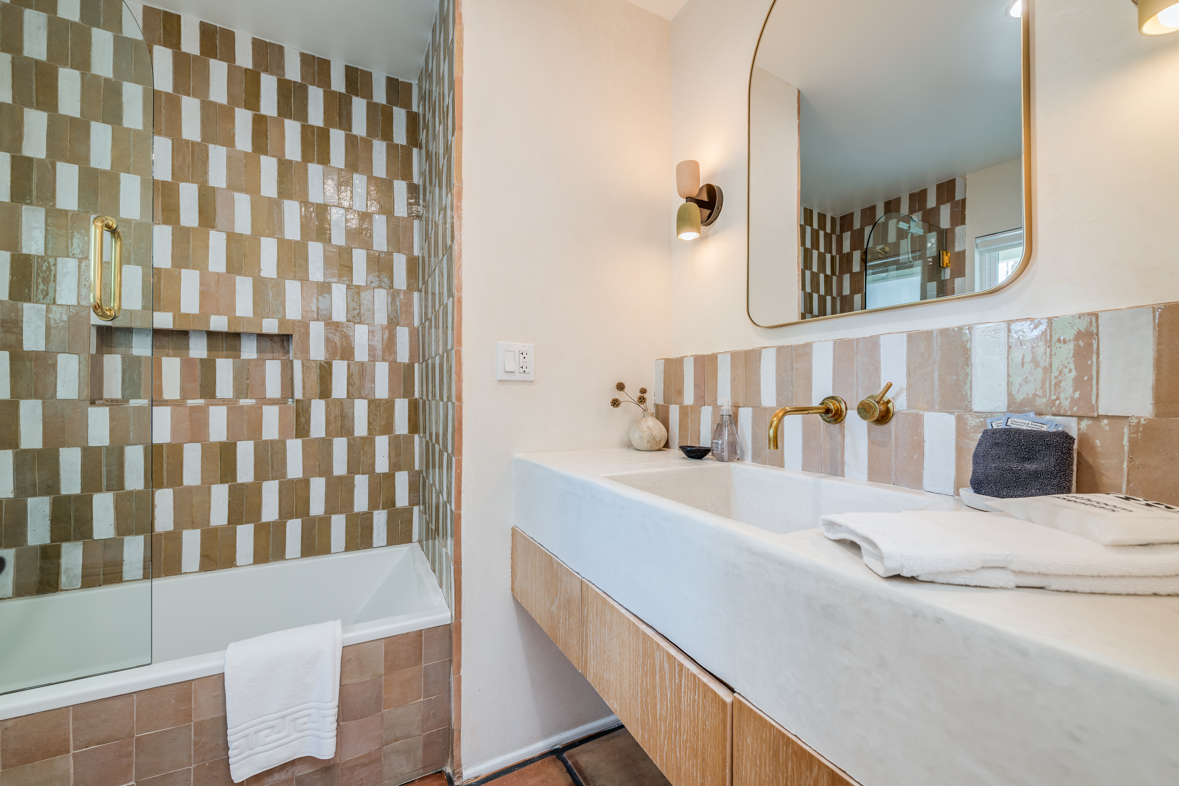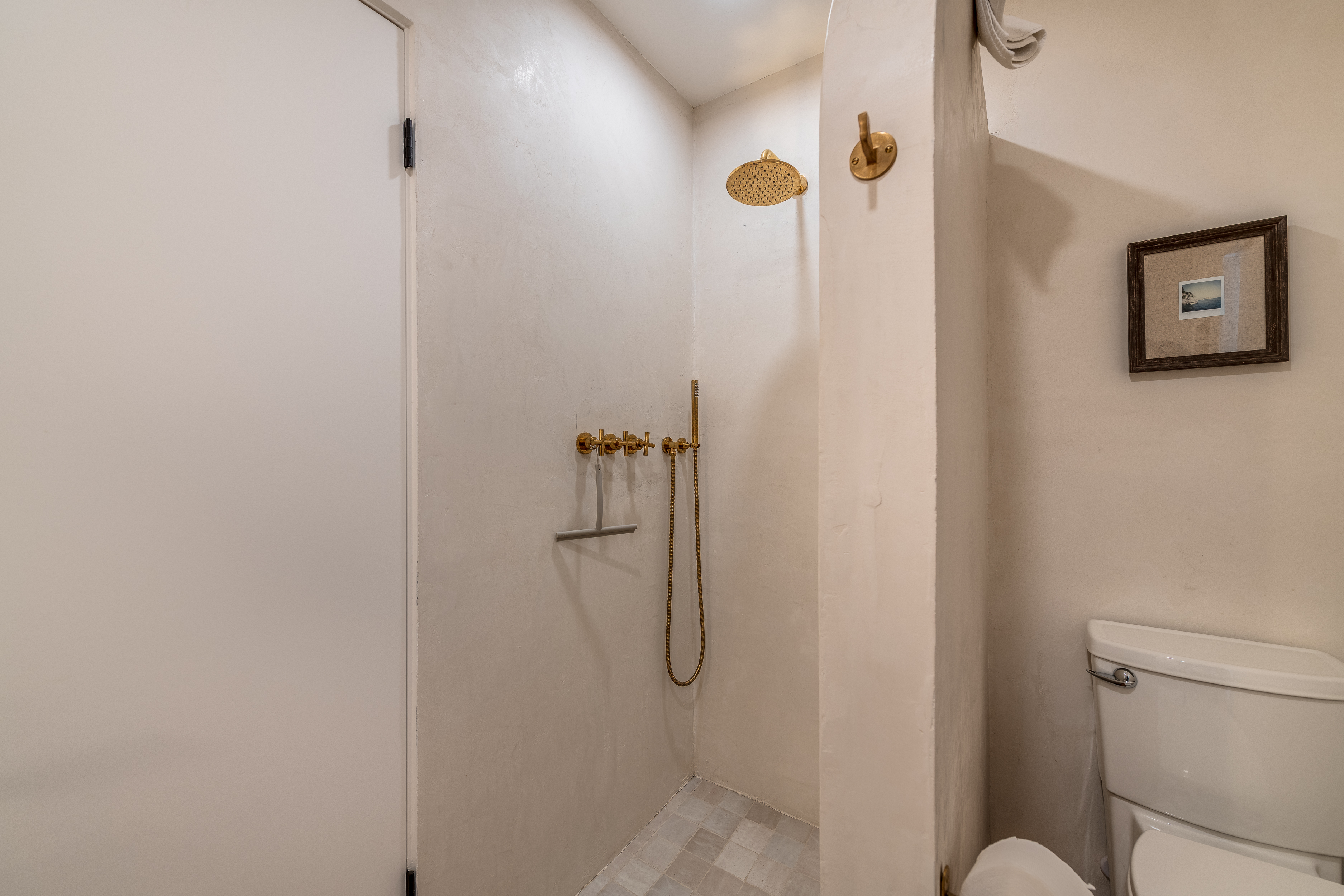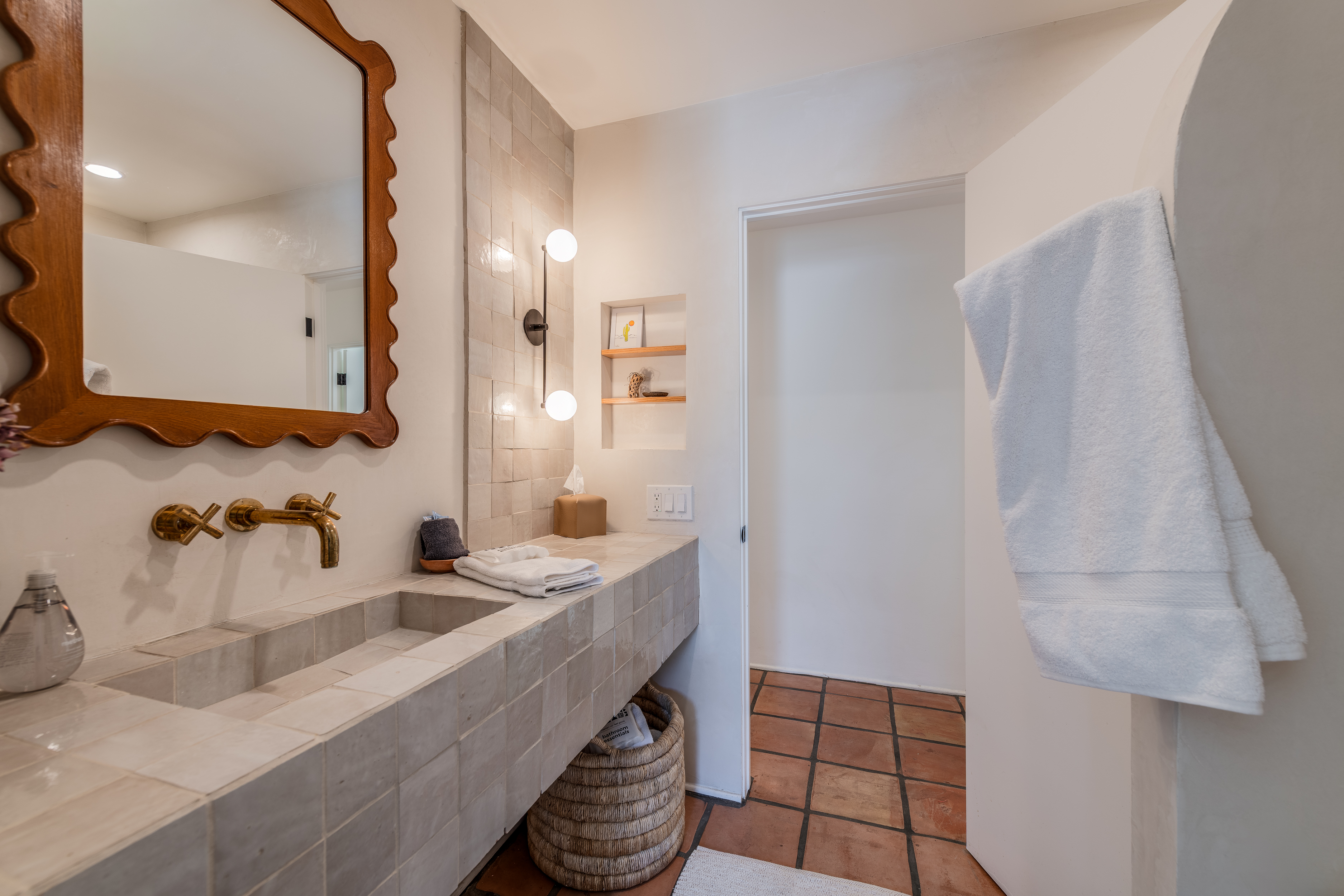 A hallway off the living room, to the left, takes you to the 4 guest rooms. Two guest rooms, one with twin beds and another with a queen bed, share a hallway bathroom. A third guest room features a king bed and an en-suite bathroom. The primary is a lovely retreat for the lucky occupant with sliders to the back yard. The en-suite primary bath features the original 'sunken' Grecian tub/shower.