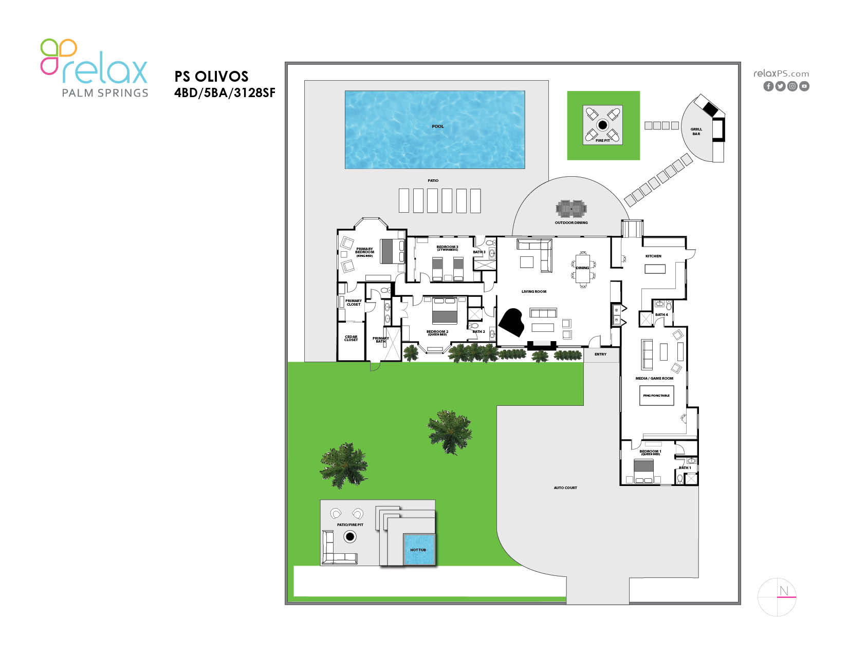 We really enjoyed our stay and although we had some issues, the management group did a great job fixing the issue. Overall, the property is great. We had two families and a grandmother, so five bedrooms all with en suite bathrooms was excellent and great privacy with two wings of the house for some separation. Also like that the hot tub area and pool area are separate allows people to split up And have their own space. The kitchen is very well equipped, and we did our Thanksgiving meal here and they went out and purchased some additional items for us, which was greatly appreciated. The only negative were the property is a bit dated so the pictures definitely do not represent the wear and tear on the property. The house was built in 1943 so the issue we had was a big back up in the primary bathroom that happened twice where they had to call. Plumbers in late in the evening due to a large water back up and into the toilet area as well they addressed it very quickly and fixed it. The only other surprise is this house is located in the movie colony right next to the desert Medical Center so there is nonstop helicopters that fly overhead creating a ton of noise, but we got used to it. We will definitely rent again with relax Palm Springs. I’m not sure if it will be this property.- Anonymous from Dublin, Posted: 12/2/2025